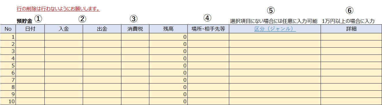 当事務所の入力用シートの預貯金部分に関する説明です。まずは、下記の図をご確認ください。